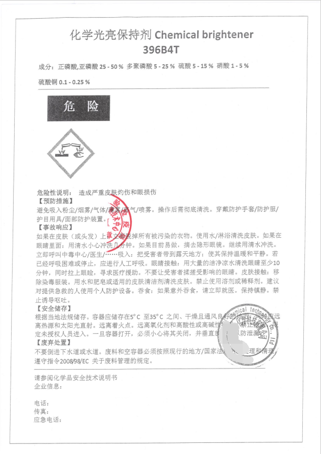 3、危險公示標(biāo)簽一式兩份(危險公示標(biāo)簽要求參考國家標(biāo)準(zhǔn)GB 15258-2009的樣張示例),提交的兩份標(biāo)簽樣本盡量彩色打印于A4紙上。